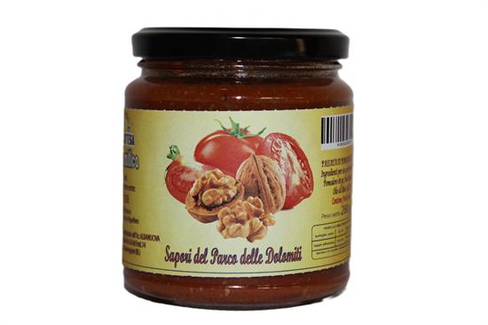 Pomodoro, noci macinate, olio d'oliva, sale, pepe